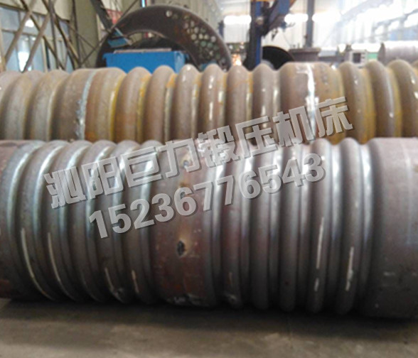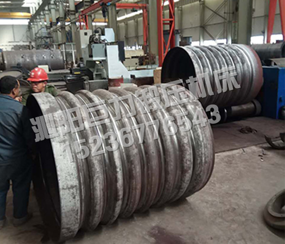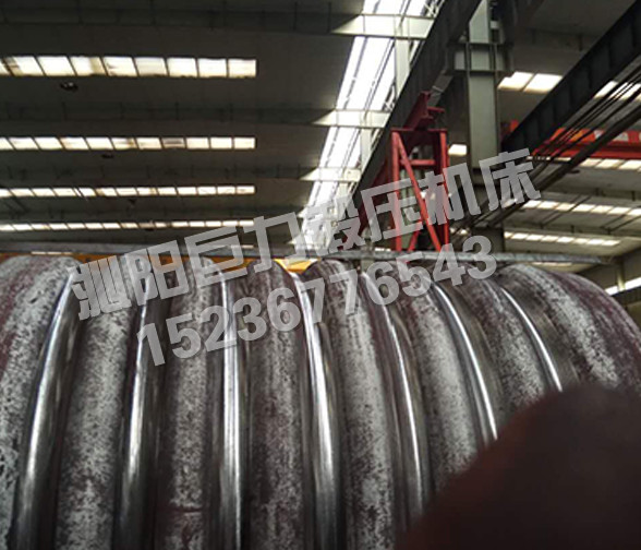 W12NC-系列微控波紋四輥卷板機(jī),既可作為普通四輥卷板機(jī)使用,能將金屬板料一次上料,不需調(diào)頭即可完成板料端部預(yù)彎和卷制成形,剩余直邊小,是卷制圓形、弧形工件的理想設(shè)備。該機(jī)上下工作輥均為主驅(qū)動(dòng)輥,由液壓馬達(dá)、行星減速機(jī)驅(qū)動(dòng),側(cè)輥為被動(dòng)輥,下輥、側(cè)輥升降為液壓傳動(dòng),升降位移均由計(jì)算機(jī)控制,自動(dòng)調(diào)平,屏幕數(shù)字顯示,同步精度±0.15mm。翻轉(zhuǎn)軸承體的翻轉(zhuǎn)和復(fù)位,由液壓驅(qū)動(dòng),上輥尾部裝有平衡機(jī)構(gòu),可以方便卸出卷制后的工件及筒體。設(shè)有移動(dòng)式獨(dú)立操作臺(tái),方便工人使用,設(shè)有安全聯(lián)鎖裝置,該機(jī)功能全,精度高,操作方便,是石油、化工、鍋爐、造船、水電、金屬結(jié)構(gòu)等行業(yè)卷制圓形、弧形和錐形工件為理想的機(jī)型。該機(jī)除了作為普通四輥卷板機(jī)使用外,在上下工作輥上加裝模具,還能壓制波紋筒形工件,每組模具采用上下兩片模具組合而成,方便拆裝,而且,各組模具可以自由組合成不同長(zhǎng)度,以適應(yīng)不同寬度的波紋筒壓制。為了在一臺(tái)機(jī)器上同時(shí)滿足內(nèi)波紋筒和外波紋筒的壓制,上下工作輥設(shè)計(jì)為同一直徑,針對(duì)不同的波形,上下輥上的凸模和凹模可以互換,地降低了產(chǎn)品成本,方便用戶使用。在機(jī)器一側(cè)的聯(lián)接梁上布置有二個(gè)擋料裝置,以確保壓制波紋筒時(shí),工件不會(huì)跑偏,保證波紋筒的精度符合要求。擋料裝置左右各一個(gè),沿軸向可以通過油缸作用移動(dòng)一定的距離,以適應(yīng)不同寬度的波紋筒都能準(zhǔn)確定位。