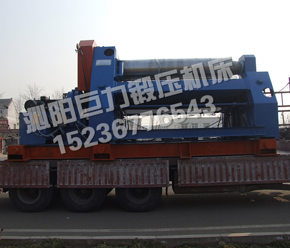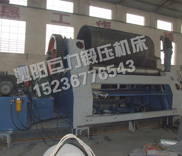 該四輥卷板機(jī)與對(duì)稱三輥卷板機(jī)比較,它可以不借助其它設(shè)備模具,直接予彎板材端部,而且剩余直邊較小;它可以不使板材調(diào)頭,而卷成工件。